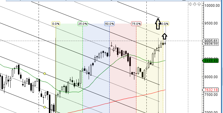 As discussed in last analysis 8957 done now coming towards 9120/9220/9300 as per gann angles in next 3-4 weeks.