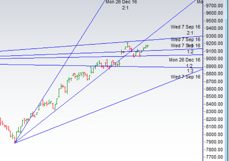 - As discussed in last analysis As per time analysis we have made a low till 9020 is not broken and we can see upmove towards 9175/9216/9268 once we close above 9130 Bearish below 9077 for a move back to 9020/8992 We have seen close above 9130 today above gann angles, suggesting we can see range expansion and we are heading towards 9175/9216/9268. Bearish below 9070 for a move till 9020. Nifty continued to trade above 9130 and have given the highest weekly monthly and quarterly closing. Now bulls should protect 9130 for a move towards 9216/9268/9350. Bearish below 9100 for a move towards 9030/8969. Bank Nifty corrects from Gann Angle Resistance,EOD Analysis