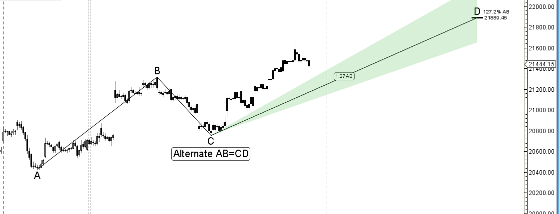 As discussed in last analysis Another important ABCD pattern is forming till 20750 is held we can see move towards 21600.