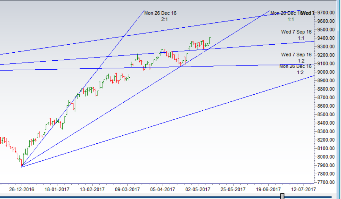 - As discussed in last analysis We are approaching the end of sideways time cycle, get ready for a trending move in next 1-2 days.Trend trader should wait for range break for move towards 9425/9460 on upside and 9220/9170 on downside. Nifty gave the trending move as we were expecting as per time cycle and in process broke 9368 and moved towards 1 target of 9425 high made was 9414 and now mostly 9425 will be done tomorrow. Above 9425 next target are 9460/9559. Bearish below 9310 only. Bank Nifty Hits new life high holding 22700