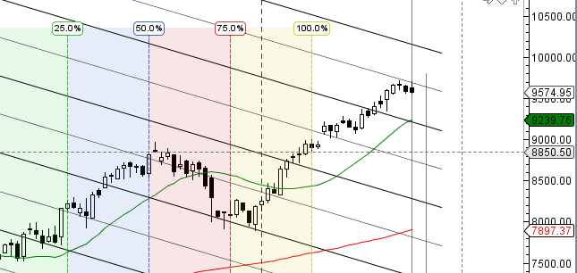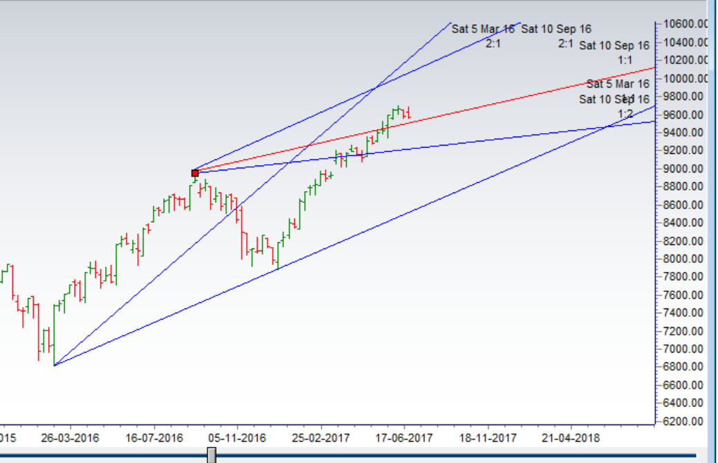 High made 9699 waiting for 9770/9906.Gann angle support is in range of 9560-550