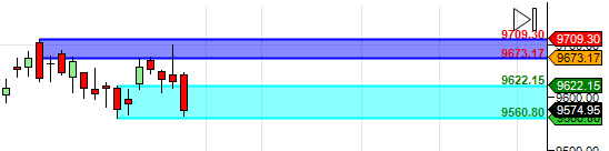 Bulls need to hold 9560 for a move towards 9673/9720/9800. Bearish below 9560 for a move towards 9400