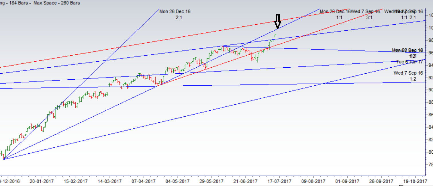 - As discussed in last analysis High made today was 9825 so still we are not able to break 9830 but today close was above 9790 which is mildly bullish, and if we break 9830 than we can again see a fast rise towards Bullish above 9830 for next move towards 9890/9966/10000. Bearish below 9610 only. As per time cycle till 9787 is held bulls can push nifty towards the scarocant figure of 10000 by 30 July. Low made today was 9853 so nifty opened gap up above 9830 and rallied all the way till 9897, now bulls are holding 9830 we can move towards 9936/9961/10000. Bearish below 9792 for a move towards 9700/9610. Time cycle turn date of 12 July again helped in capturing good move in market. Bank Nifty continue its rally above 23550,EOD Analysis