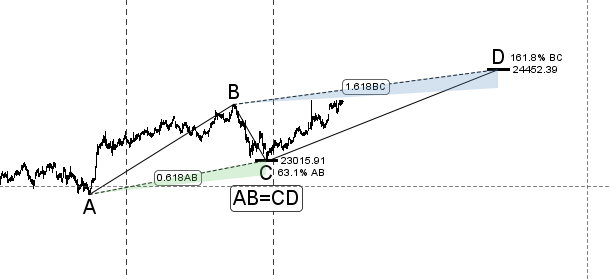 As discussed in last analysis Holding 23100 we can march towards 24000 as per Shark Pattern.