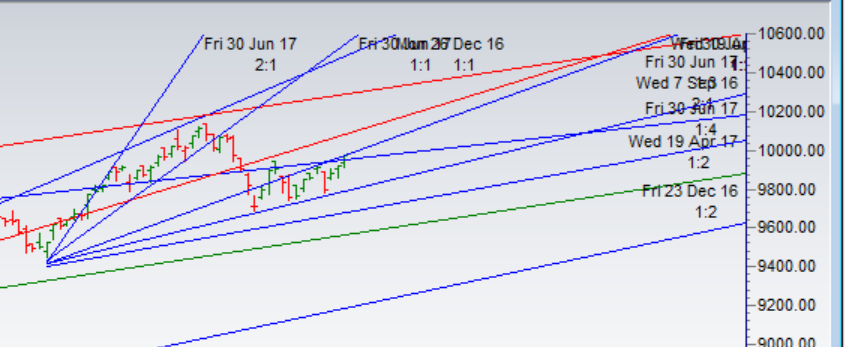 - As discussed in last analysis September series will start with time cycle date on 01 Sep, so big move should be seen in next 2 trading sessions. Also price is stuck in 2 gann angles, suggesting explosive move round the corner. Long in September series should be taken above 9950 for a move towards 10090/10150/10280. Bearish below 9850 for a move towards 9770/9685/9610. Low made was 9909 so bulls protected 9850 as soon as 9950 is broken bulls are having upperhand and made high till 9983, Range of 10026-10030 is very important range close above it we can quickly rally till 10090/10157/10235. Bearish below 9900 for a move towards 9820/9770/9710. Bank Nifty hangs around gann angle,EOD Analysis
