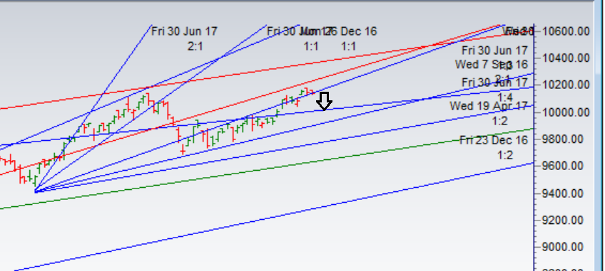 - As discussed in last analysis Another failed attempt to close above 10171, but still able to hold 10100 level. Day of consolidation after new high, not change in structure of market as we are holding the gann angle as shown in below chart. Another failed attempt to cross 10171, 2 small days of consolidation and again we protected gann angle again, expect a good move in nifty in coming 2 trading sessions. Bullish above 10171 for a move towards 10236/10300. Bearish below 10100 for a move towards 10030/9970. Bank Nifty ready for big move,EOD Analysis