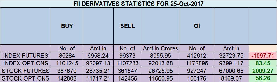 - FII’s sold 11 K contract of Index Future worth 1097 cores ,14.5 K Long contract were added by FII’s and 25.6 K Short contracts were added by FII’s. Net Open Interest increased by 40 K contract, so rise in market was used by FII’s to enter long and enter short in Index futures. FII’s Long to Short Ratio at 1.40. FII Long to short ratio signaled bottom on 27 Sep when its hit 0.99 and we are up 500 points in 13 trading sessions. What to do after Big Trading Loss