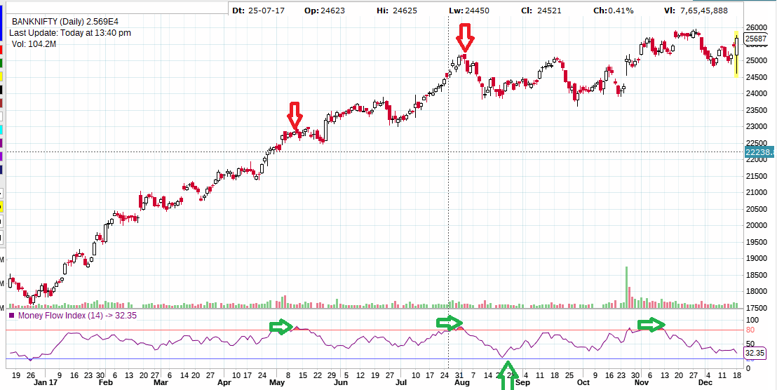 As seen in above chart of Bank Nifty whenever MFI went above 90 and its start breaking 90 from upside we got a good fall.