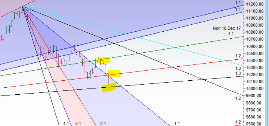 - As Discussed in Last Analysis As yesterday was an important trend change date break of 10336 can see fast move of 100-150 points and break of 10420 a rise of 100-150 points. Thanks all for your warm wishes feeling much better now. Nifty saw the expected fall as 10336 was broken and as discussed in morning on facebook low made was 10050 and we saw small bouceback. Till we are holding range of 10012-10050 bulls can see relief rally towards 10250/10410 as we are near gann angle support and also forming Bullish Butterfly pattern.Bullish above 10155 for a move towards 10230/10333/10410. Break of 10000 on closing basis can see fast fall towards 9920/9850. Important intraday time for reversal can be at 12:021/2:40. Bank Nifty holds to support zone of 24100,EOD Analysis