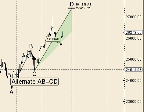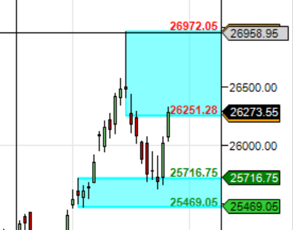 As discussed in last analysis Bulls need to hold 25607 for the move to continue towards 26000/26278/26666/27000.