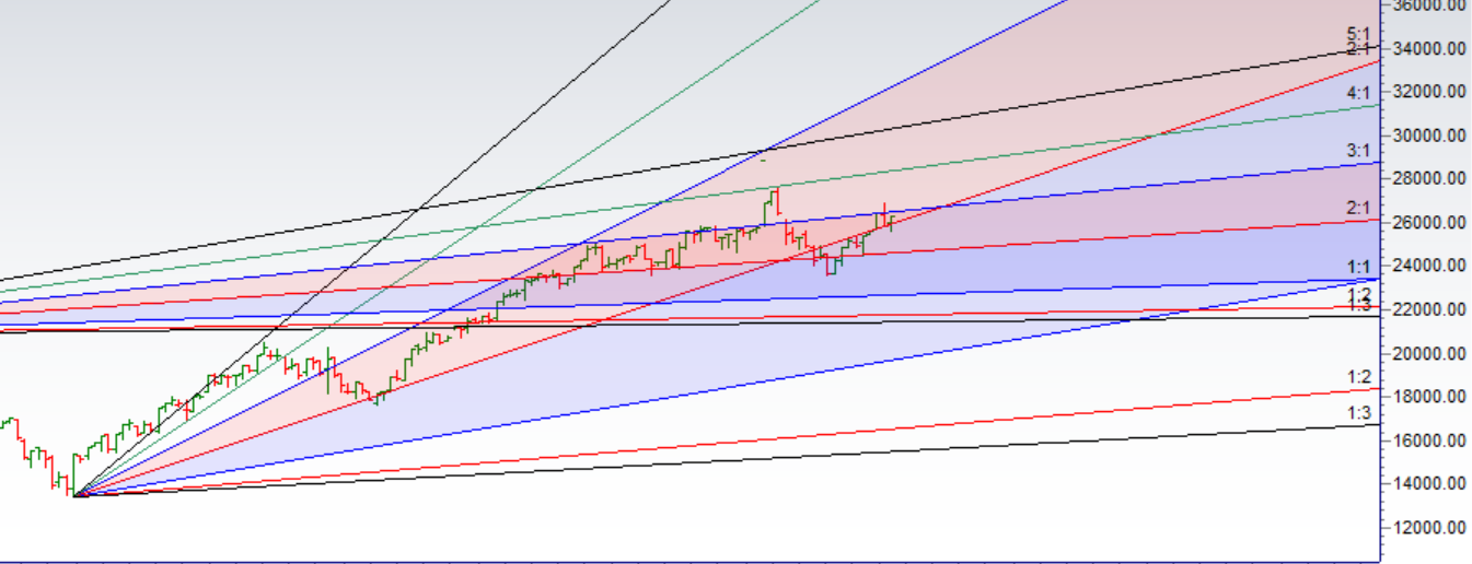Low made was 25622 so failed to do our target of 25420, Now once above gann resistance level of 26350 can see fast rally towards 26666/26800.
