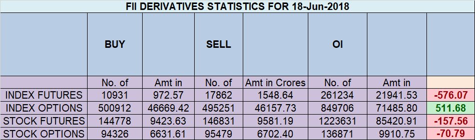- FII’s sold 754 cores and DII’s bought 824 cores in cash segment.INR closed at 67.98