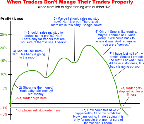 Once you’ve laid the foundation of risk control and understanding, you will automatically see the importance of the right money management techniques. If you are a Day Trader SL/TSL locked in your trading system not in your mind as a Trade Moves in Your Favor. If you don’t, you will inevitably suffer a devastating loss that you cannot recover from without adding money to your account. Spend some time in reviewing the below image and try to connect your trades with it. You must have gone through similar situation many time when you never followed your Money Management.