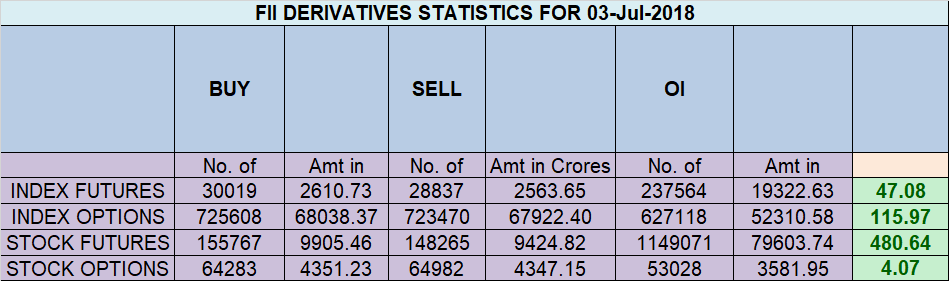 - FII’s bought 1.1 K contract of Index Future worth 47 cores ,6.3 K Long contract were added by FII’s and 5.1 K Short contracts were added by FII’s. Net Open Interest increased by 11.4 K contract, so rise in market was used by FII’s to enter long and enter short in Index futures. FII’s Long to Short Ratio at 0.66. Trading a New Account