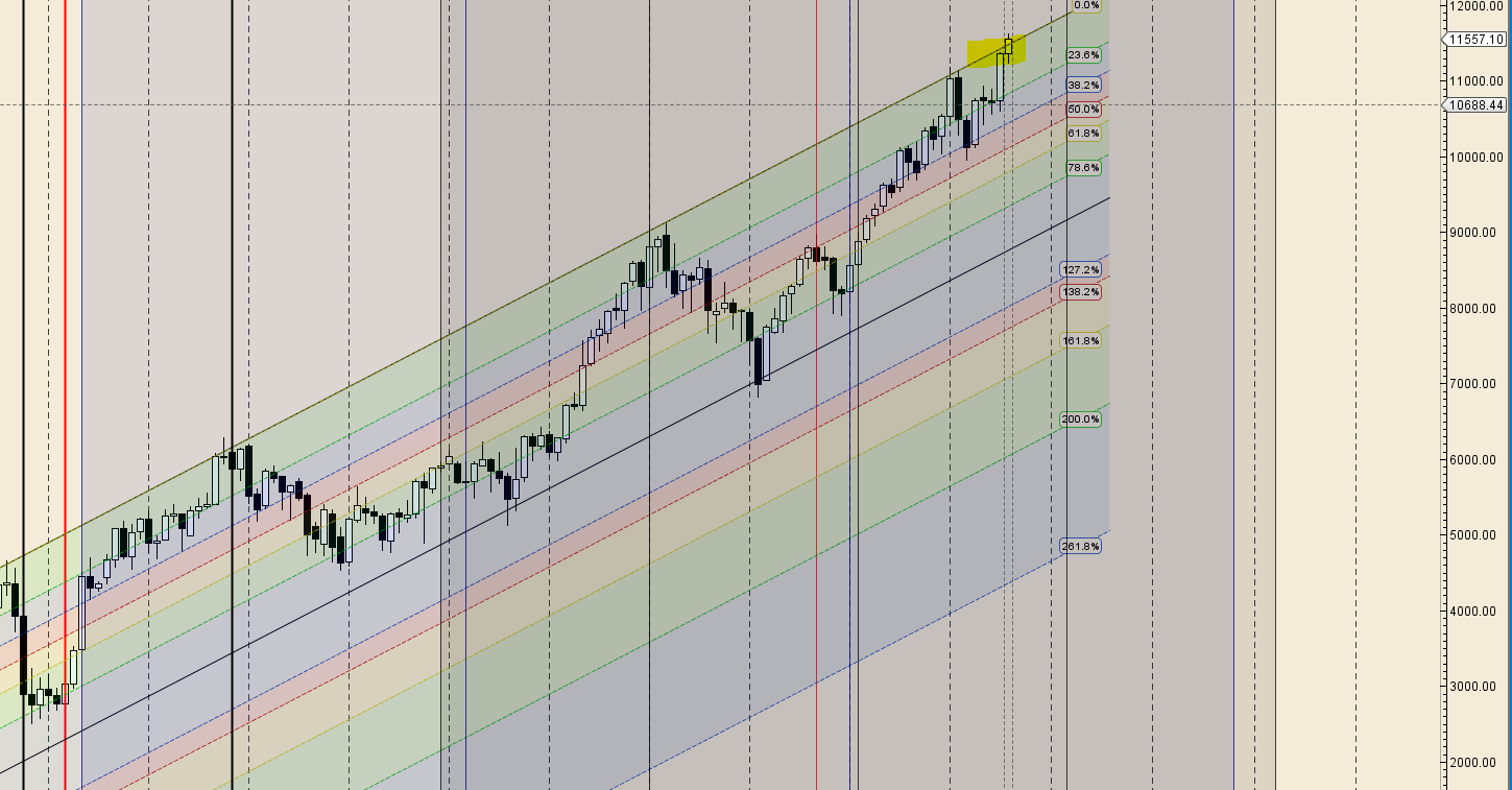 Break out in gann angle above 11600 for a move back to 11666/11730/11800. Bearish below 11500 for a move back to 11430/11370/11300.