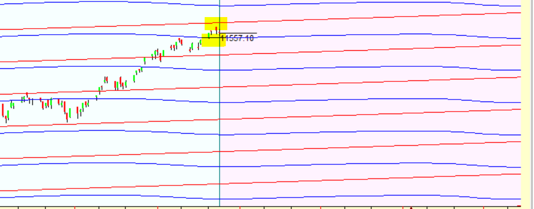 As Discussed in last analysis Breakout above 11500 as per planetary line as show above. Bearish below 11430 we can see fall towards 11370/11333/11270.