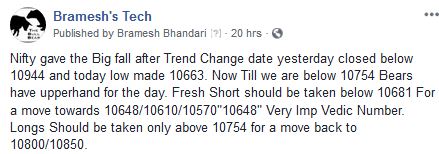- As Discussed in Last Analysis Nifty Bulls got whipsawed again,We again had a volatile move today, Important point to note in this volatile market is trade size should be less than the normal trade size so that losses are less and as a trade you are able to protect capital, We are stuck in gann angle as show below and today being trend change date High and low of today are important break of any side can give 100-150 point move easily.Bullish above 10890 for a move towards 10944/11029/11096. Bearish below 10800 for a move towards 10750-10666.We should be seeing a good move in nifty in next 1-2 days as price never stays between gann angle for so long. Nifty opened gap down so traders who were short from 10944 were rewarded and below are the intraday levels we posted on FB and Twitter Nifty moved as per analysis. Today we will hit 10512/10455 in opening. Now Bears need to make sure we do not close above 10570 for down move to continue towards 10410/10355/10210. Bullish above 10570 for a move towards 10610/10666/10730. Important intraday time for reversal can be at 10:36/1:35/2:11. Bank Nifty Analysis before RBI Policy,EOD Analysis