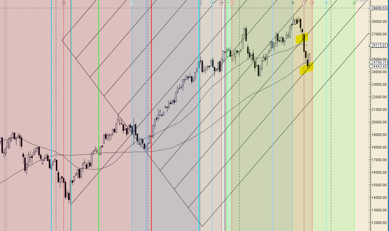 It was positive week, with the Bank Nifty up by 952 points closing @25935. As discussed in last Analysis Bulls need to protect 24100 for the fall to stop, else we can see fall towards 23500/23333/23000. Bullish above 24500 for a move back to 24800/25050. 09 Oct Important trend change date.