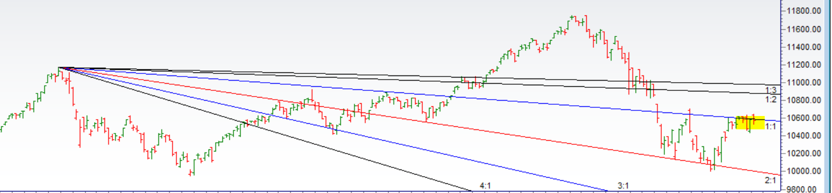 - As Discussed in Last Analysis Now Bulls need a close above 10610 for rally to sustain all the way till 10666/10712. Bearish below 10540 for a move back to 10485/10410.Another failed attempt to close above 10600 by bulls and low made was 10532 so bears also got whipsawed, Now Nifty is forming a range after a swift rally of 500 points from 10100-10600. As i have discussed before range of 10610-10630 is very imp supply zone as of now Bulls are absorbing the supply but need a close above 10630 for a swift rally till 10710/10777. Bears will get active below 10512 for a move back to 10470/10410. Important intraday time for reversal can be at 1:14/3:03. Bank Nifty break out of gann angle,EOD Analysis