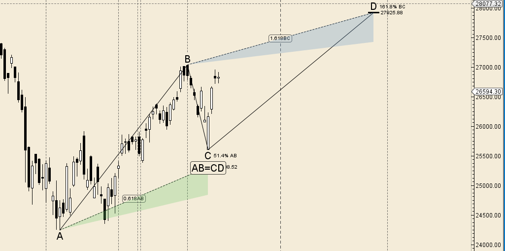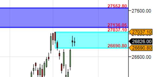 Bullish above 26920 for a move towards 27000/27220/ 27340/27532 Bearish below 26500 for a move back to 26250/26000/25920/25784