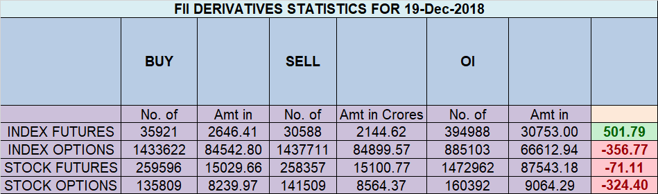 - Nifty Dec Future Open Interest Volume is at 2.12 core with addition of 1.1 Lakh with decrease in cost of carry suggesting long position were added today, NF Rollover cost @10727 closed above it.