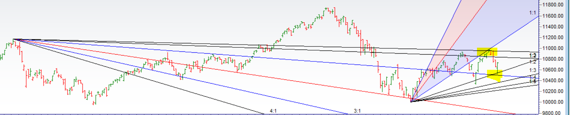 - As Discussed in Last Analysis Now bears need to break 10570 for a move towards the support zone of 10525-10512. Bulls will get active only above 10730 for a move towards 10800/10888. Low made today was 10535 near our support range of 10525, took exact support at gann angle as shown in below chart, We gave levels on Twitter which worked perfectly. As we have expiry tomorrow Bulls need a close above 10750 for a move towards 10822/10877. Bearish below 10699 for a move towards 10666/10636/10578.Important intraday time for reversal can be at 10:16/2:32. Bank Nifty give perfect bounce from Gann Angle