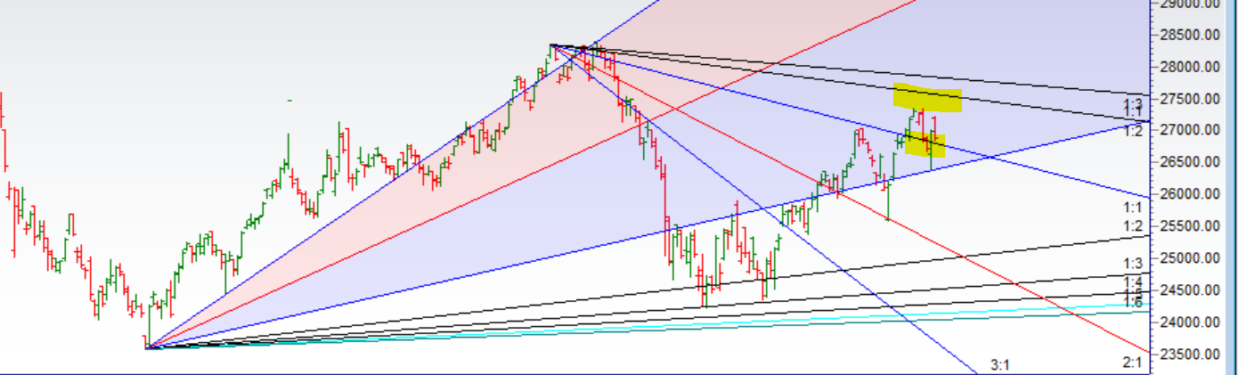 - As Discussed in Last Analysis As we have expiry tomorrow Bulls need a close above 27071 for a move towards 27225/27360. Bearish below 26920 for a move towards 26800/26666. We gave levels on Twitter which worked perfectly also closed below 26920 so we can see fall towards 26800/26666. Bullish above 27000 for a move towards 27071/27225. 29 Dec Is very Important time cycle date as discussed in below video so we can see effect either tomorrow or Monday. Important intraday time for reversal can be at 11:18/2:03. How to Deal With Fear in Trading