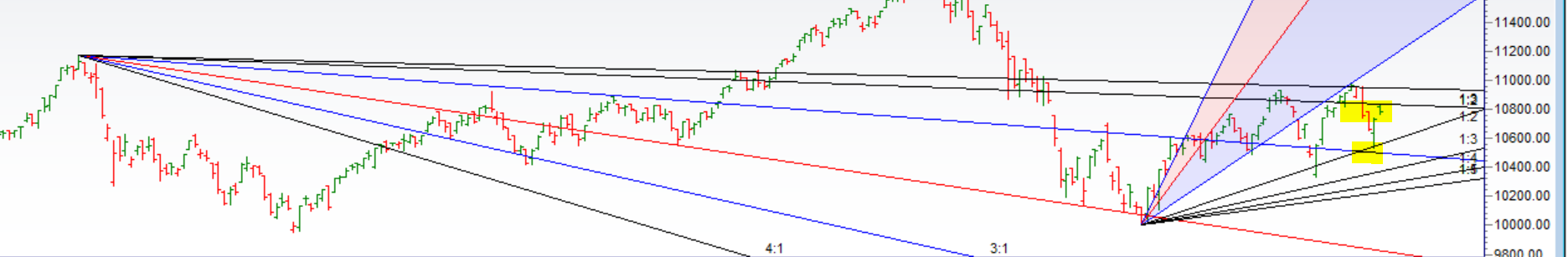 - As Discussed in Last Analysis As we have expiry tomorrow Bulls need a close above 10750 for a move towards 10822/10877. Bearish below 10699 for a move towards 10666/10636/10578. Nifty unable to break the gann angle resistance as in below chart, Now Bears will get active below 10725 for a move towards 10666/10610. Bulls will get active above 10810 for a move towards 10882/10940. Important intraday time for reversal can be at 10/11:28/2:28. Bank Nifty Jan Expiry Analysis