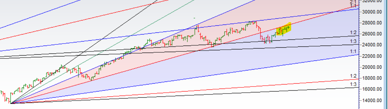 Took Resistance at higher end of gann angle, Breakout above 27225 Breakdown below 26920.