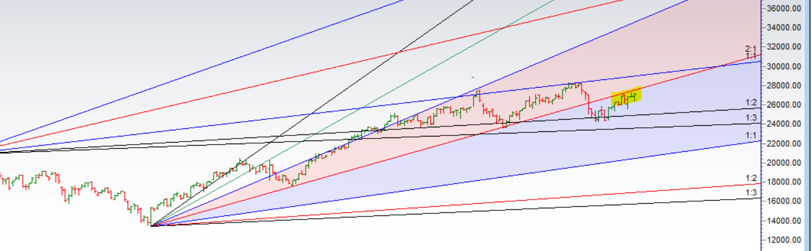 Took Resistance at higher end of gann angle, Breakout above 27225 Breakdown below 26920.