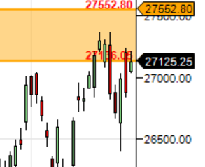 Bullish above 27225 for a move towards 27340/27532 Bearish below 26920 for a move back to 26784/26666/26500/26225