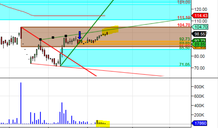 Also as per Supply Demand Stock is near trendline breakout can rally towards 104/111/120 in short term.