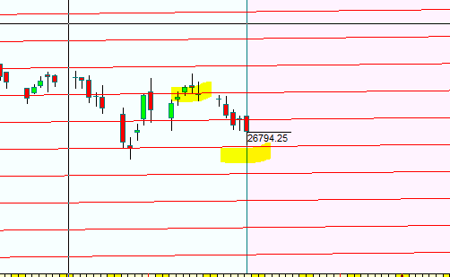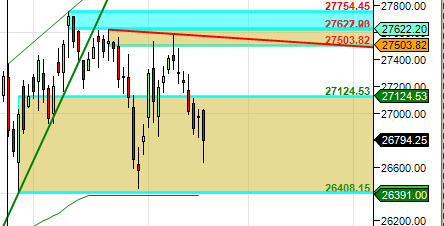 Bulls need to close above 26920 for a move back to 27000/27225/27350. Bears will get active below 26700 for a move back to 26500/26250.