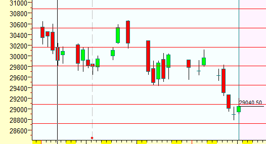 Bulls need to move above 30125 for a move back to 30250/30390/30666/30810/31000. Bearish below 28900 for a move back to 28800/28640/28500/28300.