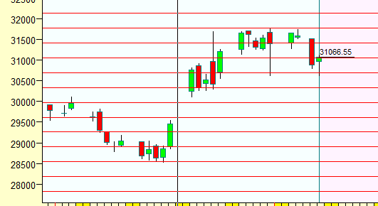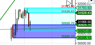 Bulls need to move above 31100 for a move back to 31250/31500/31784/32000 Bearish below 30800 for a move back to 30666/30500/30265/30000.