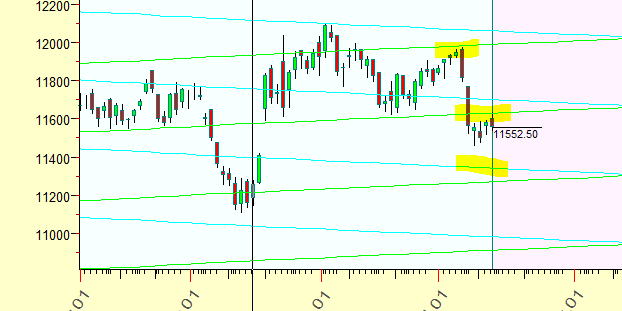 Break down of Gann Angle suggesting we can fall towards 11400/11250 till we are trading below 11610.