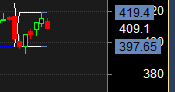 Close below 408 Target 399/385