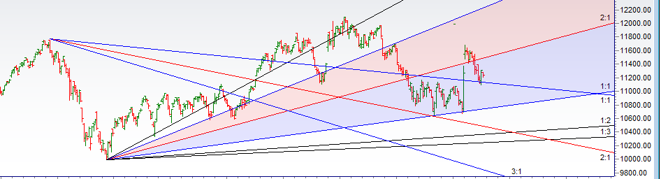 - As discussed in last analysis Bears will get active below 11230 for a move back to 11176/11100. We have bounced from gann angle as shown below suggesting we are heading towards 11600 range till we hold to 11230 levels. We closed above 11230 suggesting bulls are still holding ground Bulls will become active above 11250 for a move back to 11321/11392. Bears will get active below 11197 for a move back to 11150/11100. Today is important time cycle date