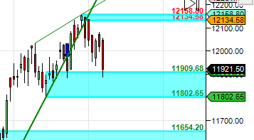 Bulls will become active above 12000 for a move back to 12080/12167/12225. Bears will get active below 11880 for a move towards 11821/11740.