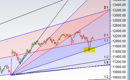 • As discussed in last analysis   Bulls need to move above 12167 for rally to continue towards 12230/12300. Bears will get active below 12080 for a move back to 12020/11959.High made was 12154 so bulls unable to move above 12167,Bears went below 12080 but failed to close below it. As per time cycle we should see big move in Bank Nifty. Bulls need to move above 12115 for rally to continue towards 12167/12216. Bears will get active below 12070 for a move back to 12020/11959.