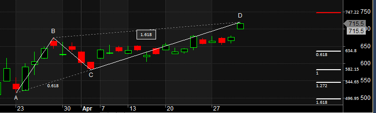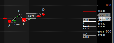 The ideal AB=CD pattern is equal in time and price, with point D being an Fibonacci extension between 127%-161.8% of the B-C leg.