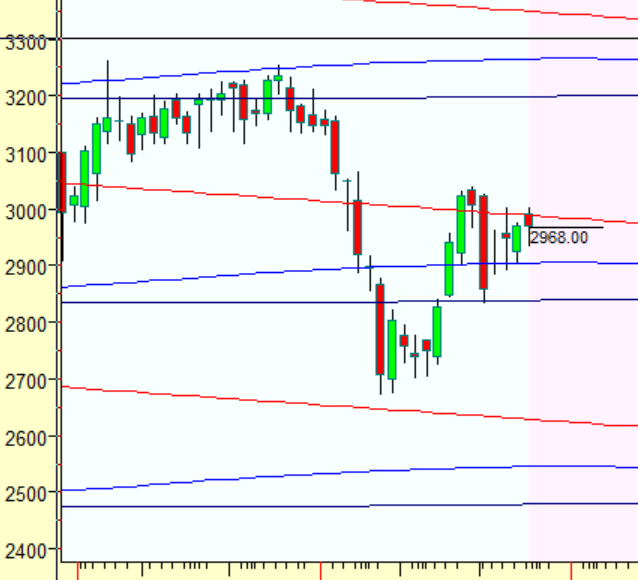 As Discussed in last Analysis  Coming week Bulls need to hold 2981-3000  for a move back to 3100-3145 range else fall back to 2900-2860 zone. 2868 done below 3000,Now Venus Squares Mars suggesting big move round the corner.