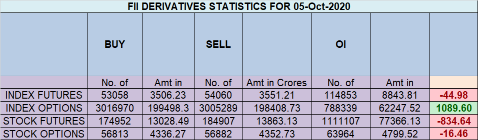 • FII sold 1 K contract of Index Future worth 44 cores, Net OI has increased by 2.6 K contract, 826 Long contract were added by FII and 1.8 K Shorts were covered by FII. Net FII Long Short ratio at 1.9 So FII used rise to enter longs and exit shorts.
