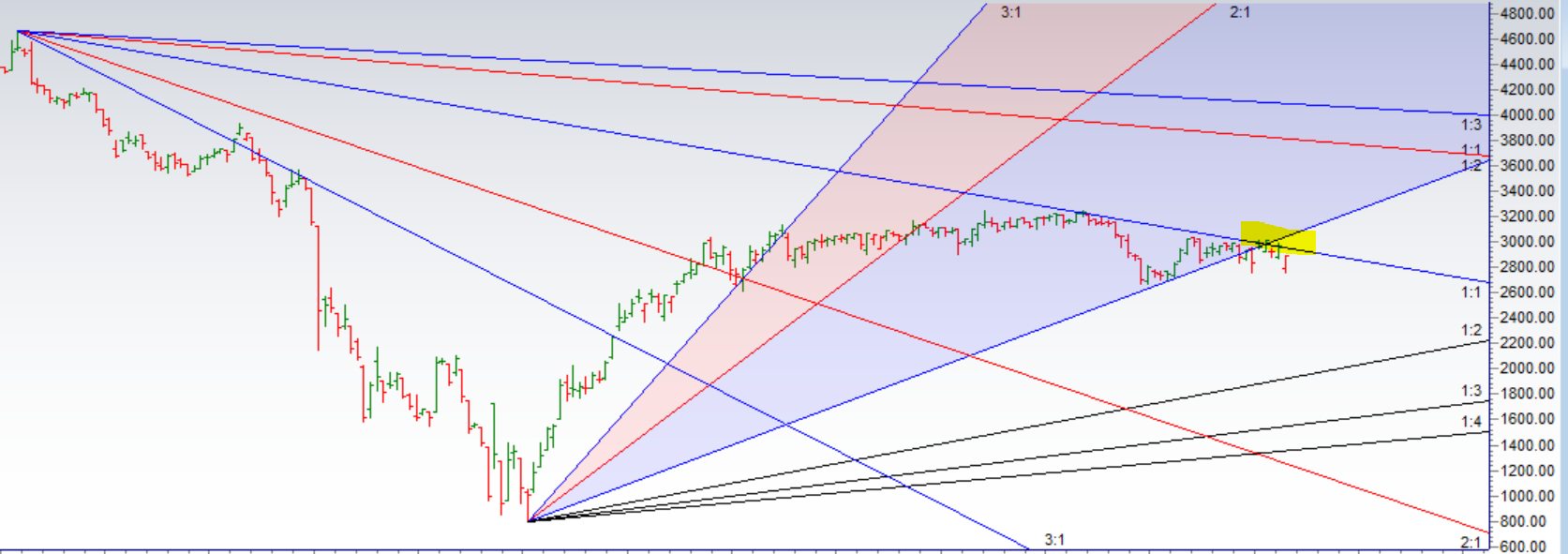 Price has broken below the gann angles so price below 2896 heading towards 2804/2750/2666/2610