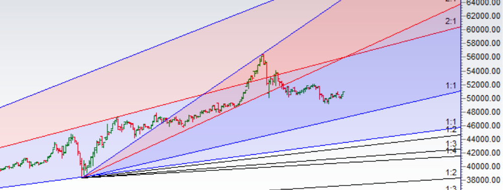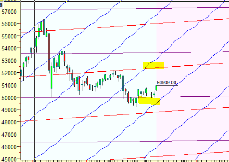 Price back above the Planneatry line and holding 50666 price heading towards 51600.