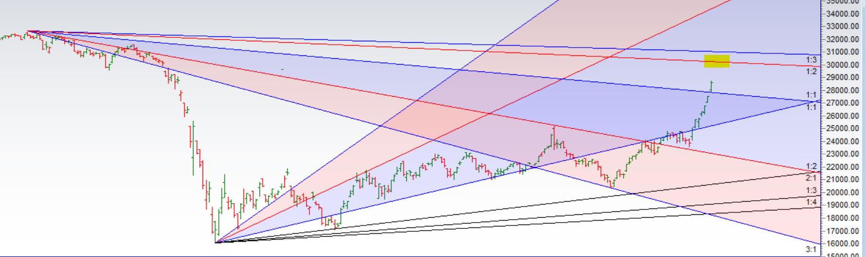 • As Discussed in Last Analysis  As per gann analysis Range of 28070-28225 will act as a resistance zone,so longs should use this range to book profits as and when it come. Bears will get active below 27450 for a move back to 27200/27000/26873. Bank Nifty continued its strong momentum on upside, Today is important astro date and break of High and low of today can see move of 350-500 points. Bulls need to move above 28656 for a move back to 28000/28944/29088. Bears will get active below 28512 for a move back to 28368/28244/28080.