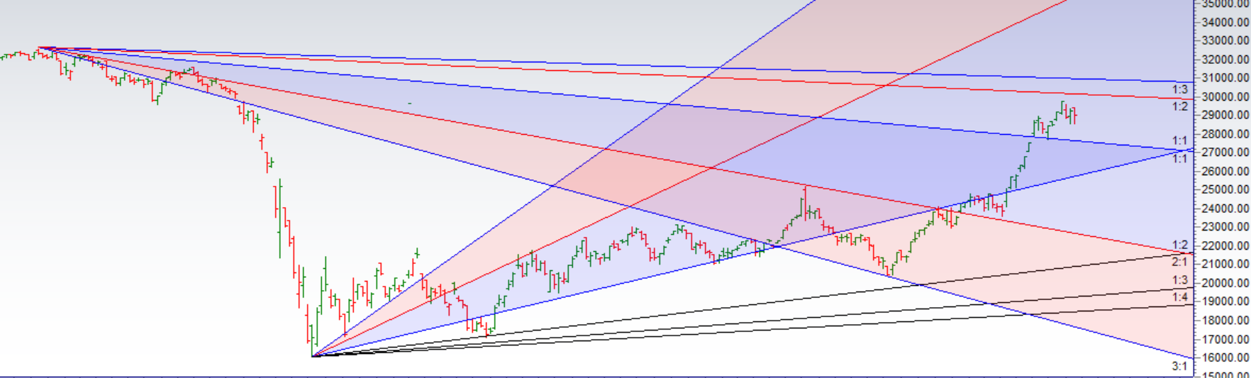 • Today was an important Astro Date and Gann Date as discussed in below video suggesting today High and low will be important for next 500-750 points move in BankNifty. Bulls need to break 29088 for a move back to 29232/29376/29520/29664. Bears below 28800 for a move back to 28656/28512/28368/28224. Every dip in market is getting bought into so trend is firmly up. When everything looks safe and bullish to you, it is selling time. When there are media stories that world is going to collapse, time to buy. Is trend really the friend? 🙂