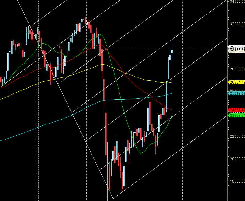 Monthly candle need to go above 29792 for a move back to 30200/30600/31000. Bears below 28791 has upper hand till 27000.