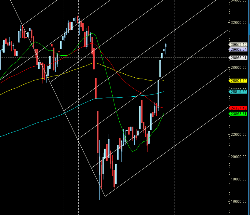 Monthly candle need to go above 29792 for a move back to 30200/30600/31000. Bears below 29500 has upper hand till 29000/28666.
