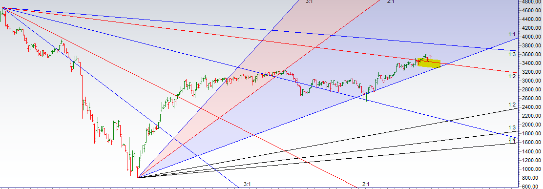 Crude broke the gann angle on upside,Range 3440-3450 is important support zone.